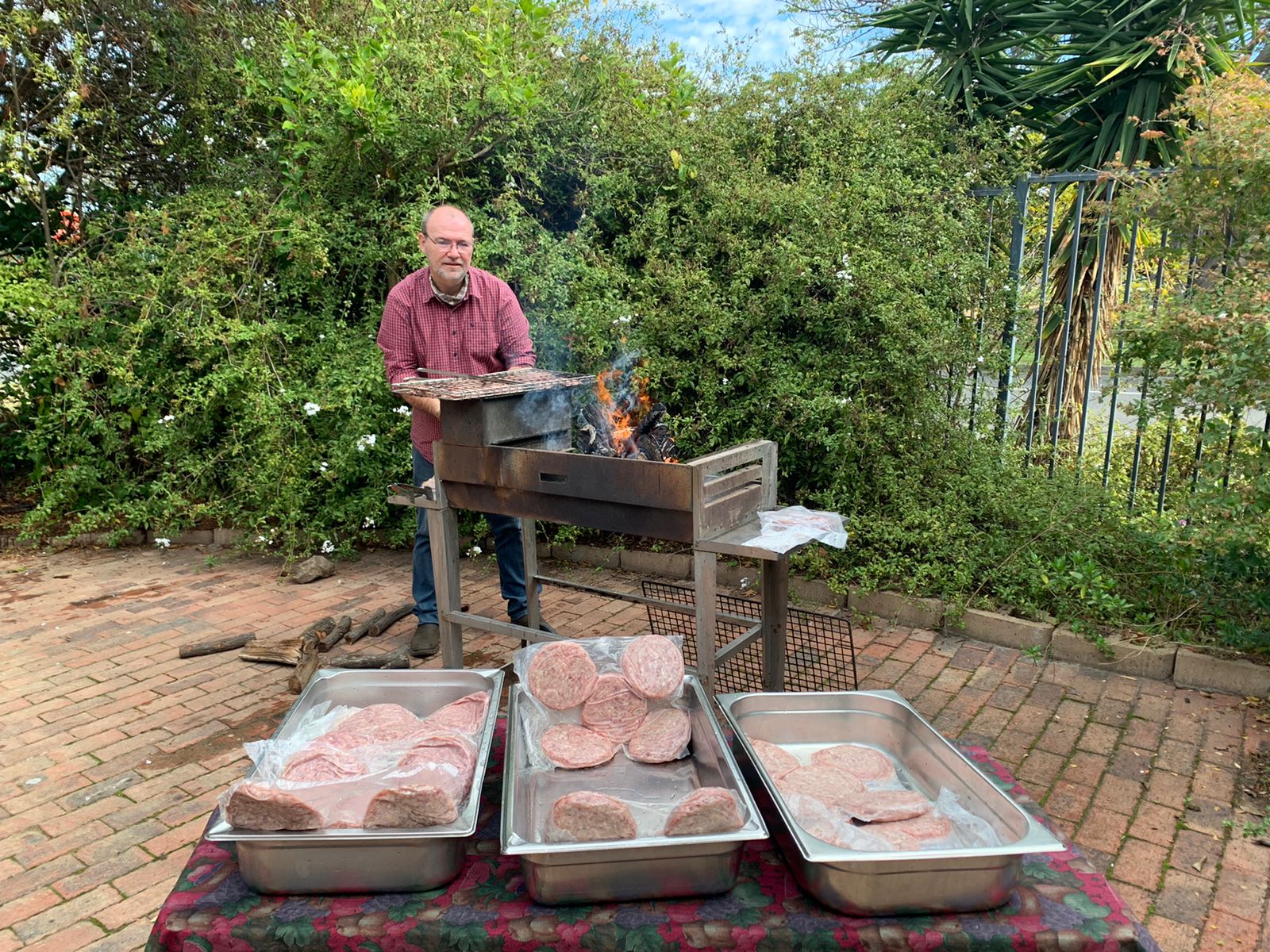 Ouers van die ouervereniging was ongelooflik om te help met die omstandighede by die skool. Hulle het ingegryp en vir koshuiskinders wat laas week in moes bly, kos voorsien. Hier braai ‘n pa, Ivan Skinner, die hamburgerpatties.