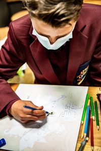 In the spirit of community engagement, talented Paul Roos schoolboys engaged in a collaborative portrait exchange with other local schools during September. This interactive art experience in partnership with the Rupert Museum included gr. 7 -11 art students from PRG, Calling Academy, Hoër Meisieskool Bloemhof and Rhenish Girls’ High School. The programme includes a museum tour and creative art sessions with Lara Kruger, artist-designer and educator. Art produced during the interactive workshops will form part of the exhibition along with selected artworks from the Paul Roos Gymnasium gr.8s’ See and Be Seen third term art assignment.