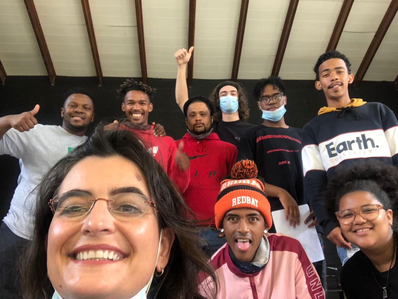 Marthie Nel Hauptfleisch music tutor for this year’s workshop programme takes a selfie of some of the 10 chosen finalists for the Gala Concert of this year’s e’Bosch Festival of Talents. At the back are Siba Qoba, Ronaldo van Rhyn, Drovigas Goshai, Robert Hindley (drama tutor), Clayton Appolis, and Lushian de Koker. At the front are Marthie, Leshton-Lee du Plessis, and Nevrihelle Arnolds.