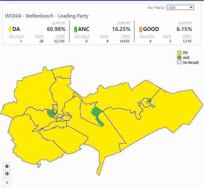 Stellenbosch is steeds onder DA-beheer nadat die party ‘n volstrekte meerderheid in die afgelope plaaslike regeringsverkiesing verower het.