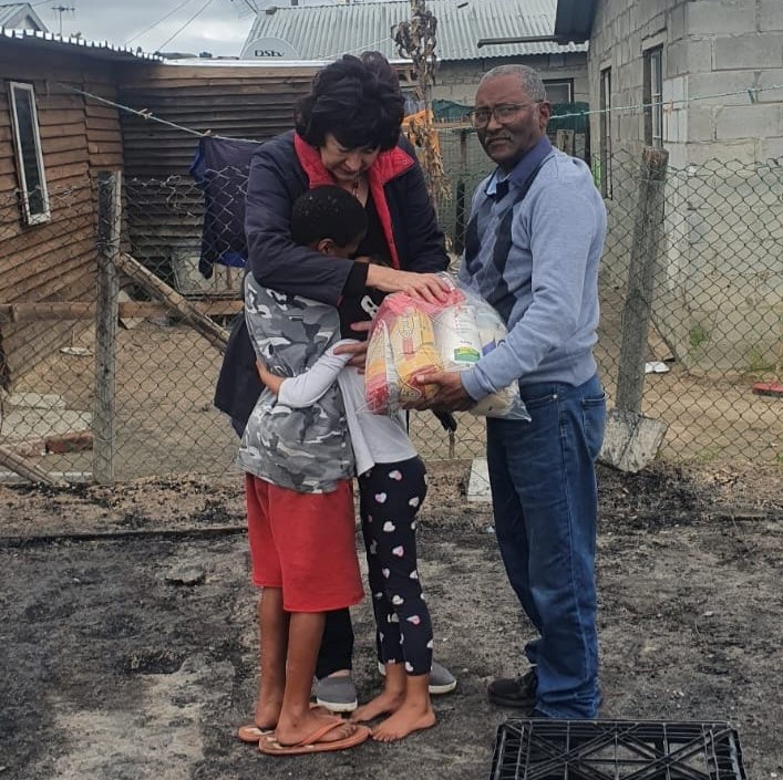Gesievan Deventer, uitvoerende burgemeester, het kospakkies uitgedeel aan inwoners van Klapmuts wat onlangs hul huise in ‘n brand verloor het.