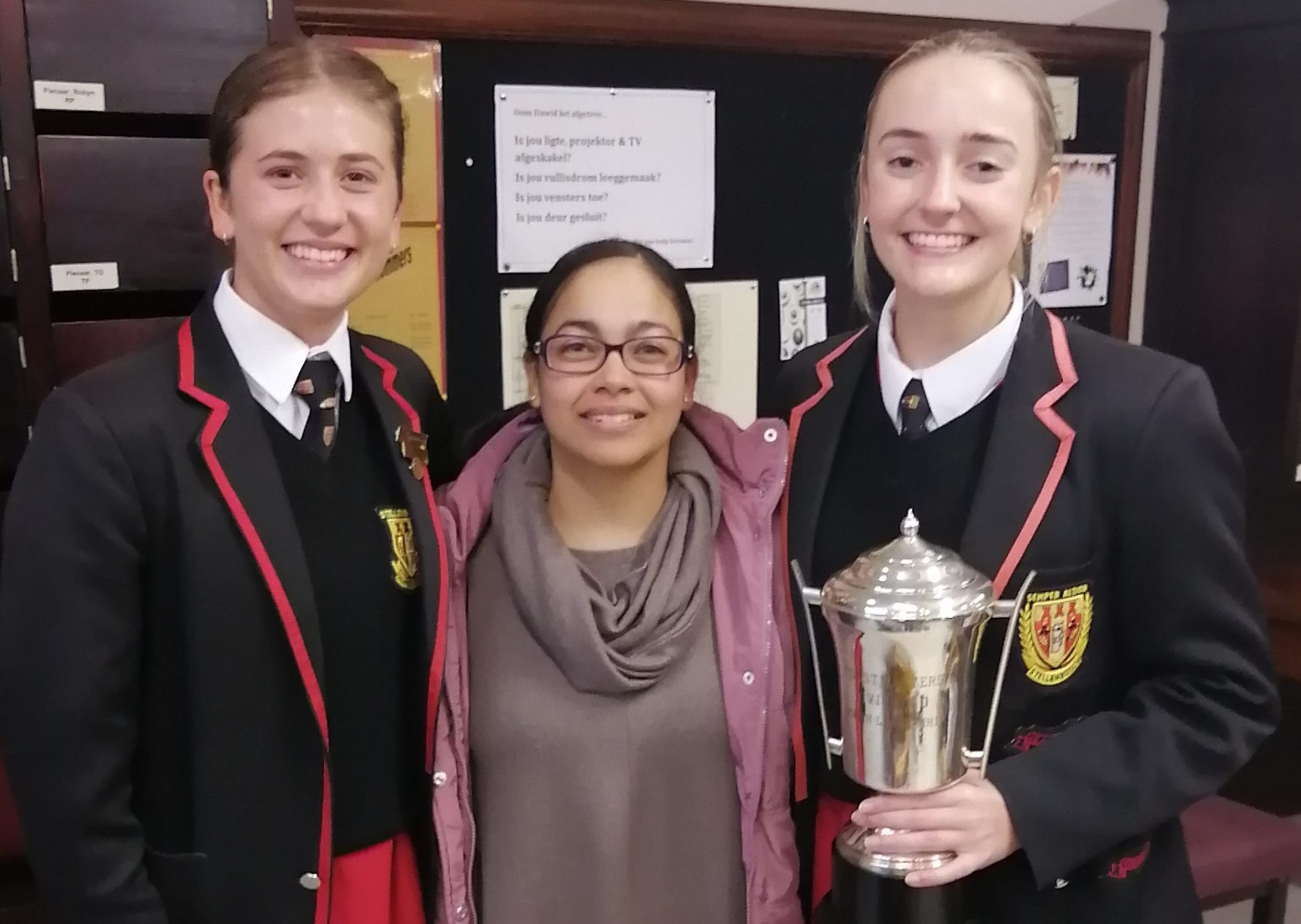 Carli is aan die einde van die aand aangewys as die wenner van die Toastmasters-jeugleierskap se streekskompetisie. Dit is die derde agtereenvolgende jaar wat Hoërskool Stellenbosch hierdie gesogte beker ontvang.