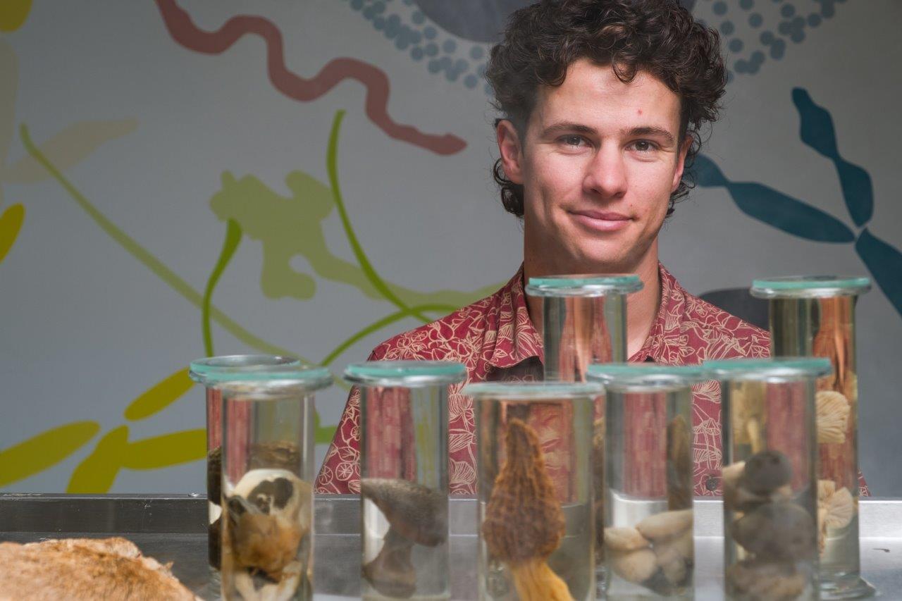 - Breyten van der Merwe from Stellenbosch University with his collection of mushrooms in the Department of Microbiology. Photo: Stefan Els
