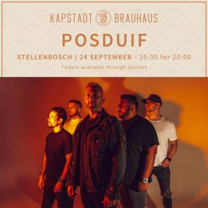 - Posduif tree 24 September om 20:00 by Kapstadt Brauhaus in Stellenbosch op en kaartjies is beskikbaar by die deur en op die groep se sosiale media platform of aanlyn by Quicket:
