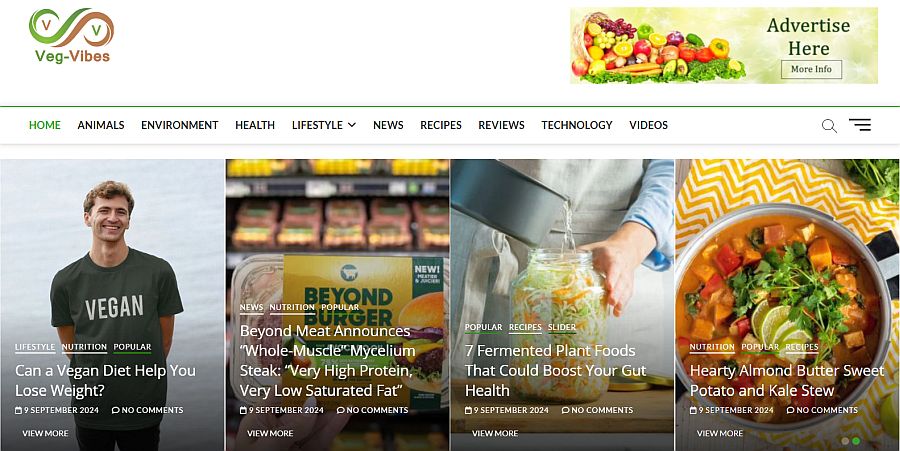 Veg-Vibes is a free online news platform focused on promoting a plant-based diet and its benefit to human health, the animals, the plants and the environment.