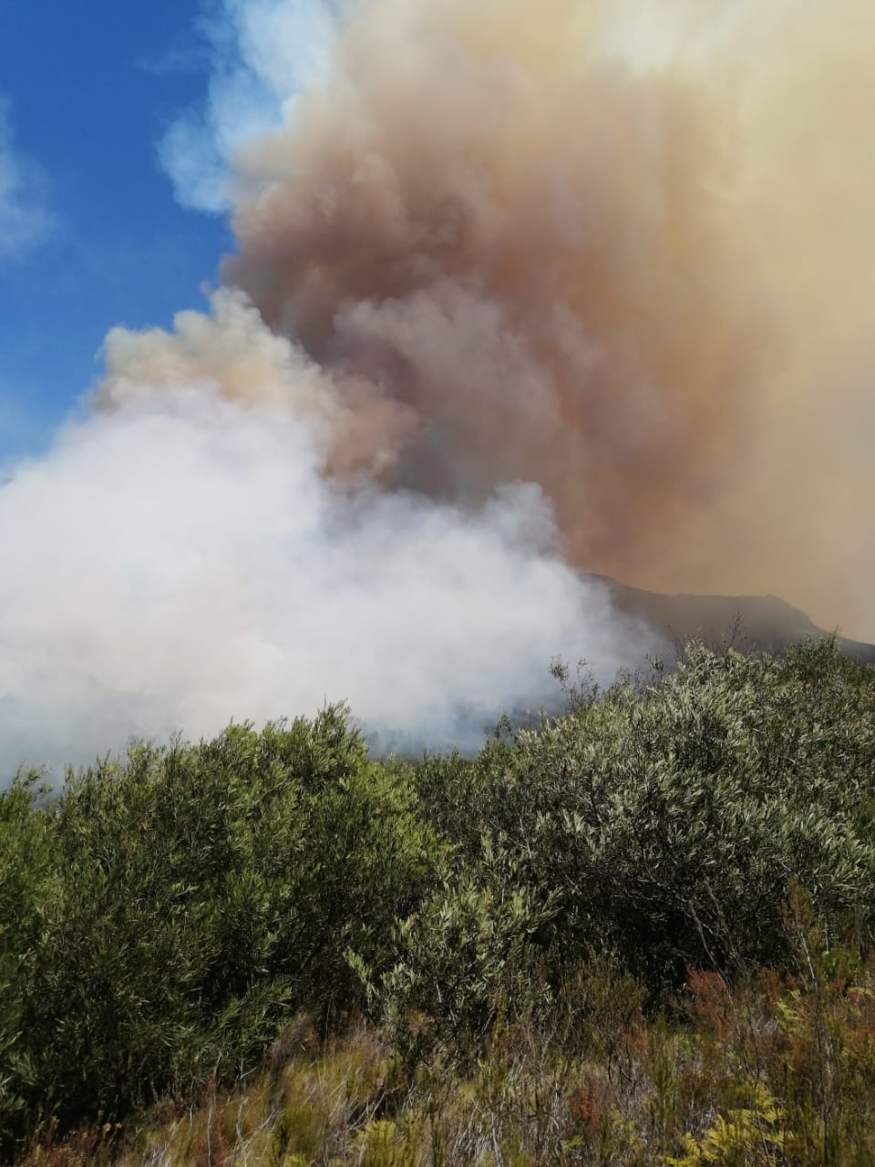 Die Kaapse Wynland-distriksmunisipaliteit se brandweerdienste en hul vennote bestry tans ‘n bergbrand in die Banhoekvallei, Stellenbosch.