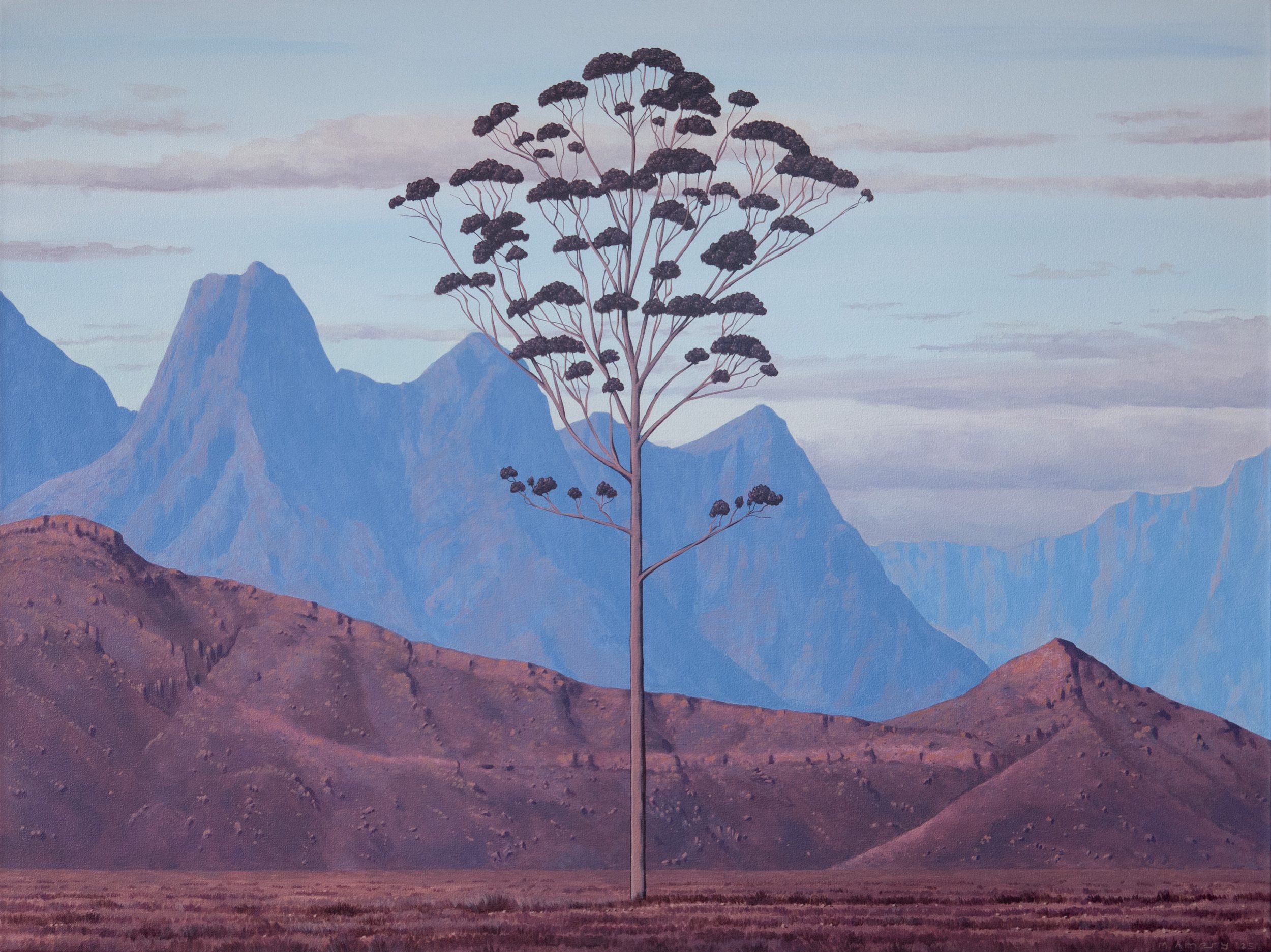 Pierneef’s structured geometry reappears in the precise, composed work of Michael Amery and in the stylised trees of Frances Wedepohl and Joshua Miles. Laubser’s approach to colour echoes in Rentia Retief’s palette, while Stern’s expressive strokes are found in the brushwork of Jenny Parsons and Thea Burger.