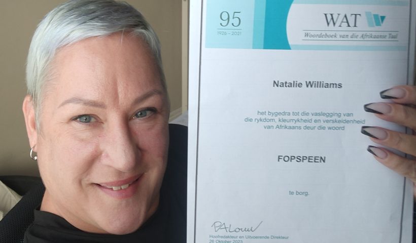 Engelssprekende wen WAT se Borg-’n-Woord-Sanlamprys van R25 000 Natalie Williams, ’n Engelssprekende van Durbanville, is met ’n gelukkige trekking aangewys as die 2024-wenner van die Woordeboek…